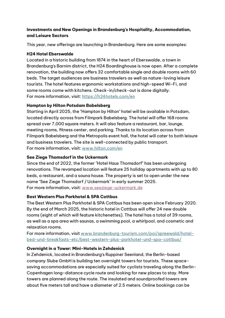 Lastly, we present the Polish holiday map of the Lausitz Lakes region, newly released in March 2025, and provide an update on the Brandenburg tourism statistics for 2024.