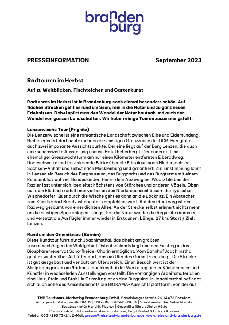 service@reiseland-brandenburg.de | www.reiseland-brandenburg.de